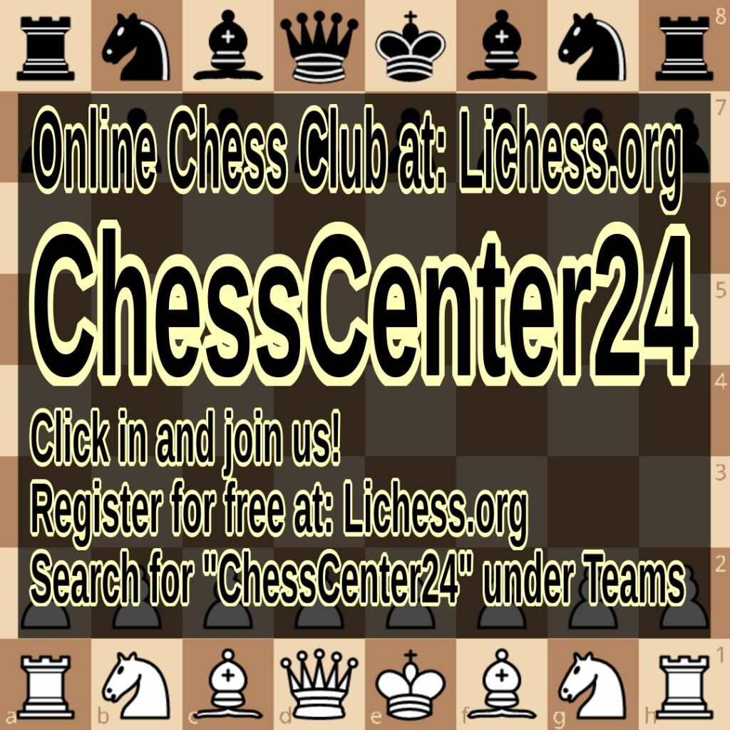 (all free – fantastic international chess server) - https://lichess.org/team/chesscenter24Join our virtual online chess club:
